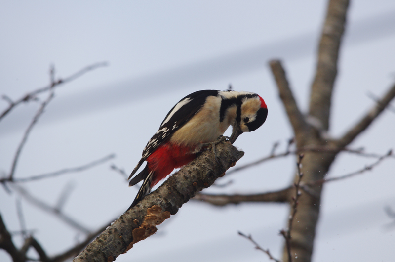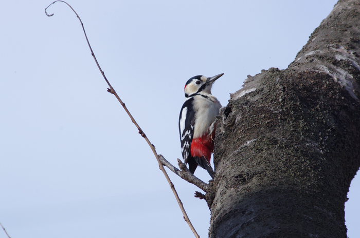 観察時期:一年中 観察場所:林 大きさ:ハトくらい 鳴き声:クッ、クッ、クッ 白に黒の縁取り、後頭部と下腹部は鮮やかな赤という美しいキツツキ類。 民家近くの雑木林で樹木を突く姿を見ることができる。 飛翔にも特徴があり波を描くように飛ぶ。 クックッという鳴き声を聴いてから樹木に停まっている姿を探すなら 見い出すことができるかもしれません。