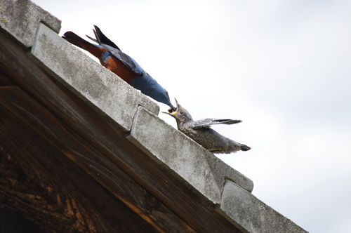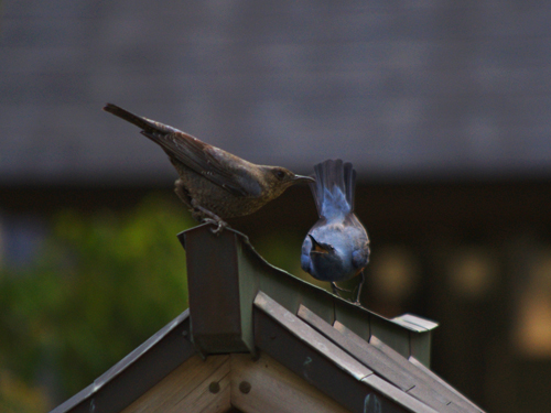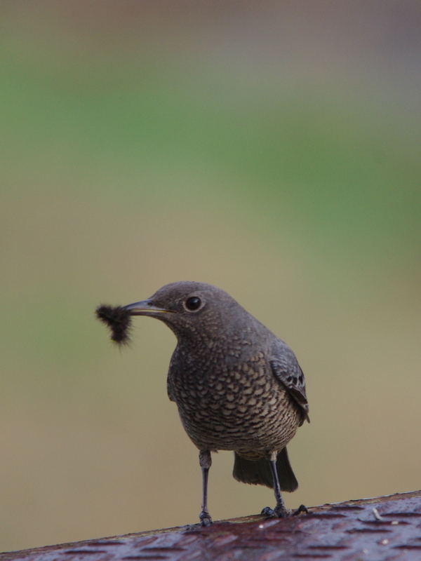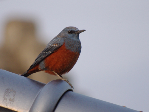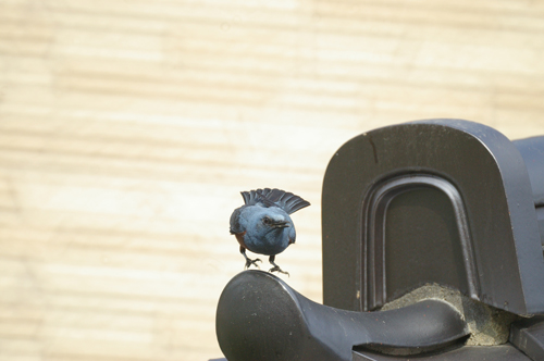観察時期:一年中 観察場所:沿岸の市街地。岩礁 大きさ:ハトより小さい メモ:イソヒヨドリのオスとメスの違いは はっきりしているのですぐにわかります。 オスは美しい青色でお腹は茶色が特徴です。 メスは比較して地味で褐色でお腹はうろこ模様です。 繁殖期には民家の屋根に停まり 美しい鳴き声でさえずります。