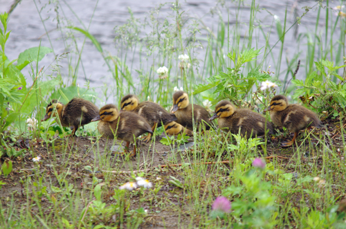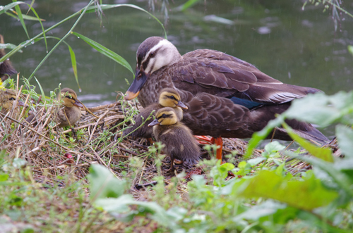 観察時期:夏 観察時期:一年中 観察場所:湖沼、河川 大きさ:カラスくらい 鳴き声:グワッ グワッ グワッ 他のカモ類が春になると旅立っていくが本種は一年中見ることができます。 オレンジ色の足に口ばしの先の黄色が特徴です。 飛び立つと鮮やかな青い翼鏡が目立ちます。 子カルガモを連れて移動する可愛い姿がニュースなどで報道され、お茶の間を賑わすことが あります。