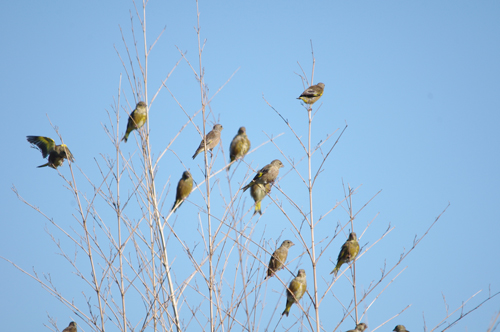 観察時期:一年中 観察場所:河原、草地、林 大きさ:スズメくらい 鳴き声:キリリコロコロ 人里近くにいる鳥です。全体に深緑色の羽色に肌色のくちばし、 翼に黄色の羽が目立ちます。 口ばしは太く種子を食べるのに適しています。 けせんでは比較的多くいるため見つけることは容易です。 電線に止まっていたり名前通り河原にいたりもします。小群れでいることが多い小鳥です。