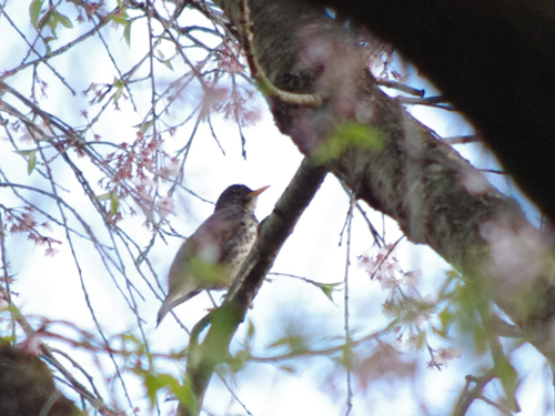 顔から首と背中にかけて黒でお腹から下面が白に印象的な黒い斑があります。 口ばしと目の周りのアイリングと脚はオレンジ。 鳴き声は豊かな声量で変化に富んでおり森全体に響き渡るようにさえずります。 夏鳥として飛来し普段は森の薄暗い場所にいるため、なかなか見ることは難しいです。 今回は秋になり南へ渡って行く前に姿を現わしてくれたところを下からでしたがカメラに収めることができました。