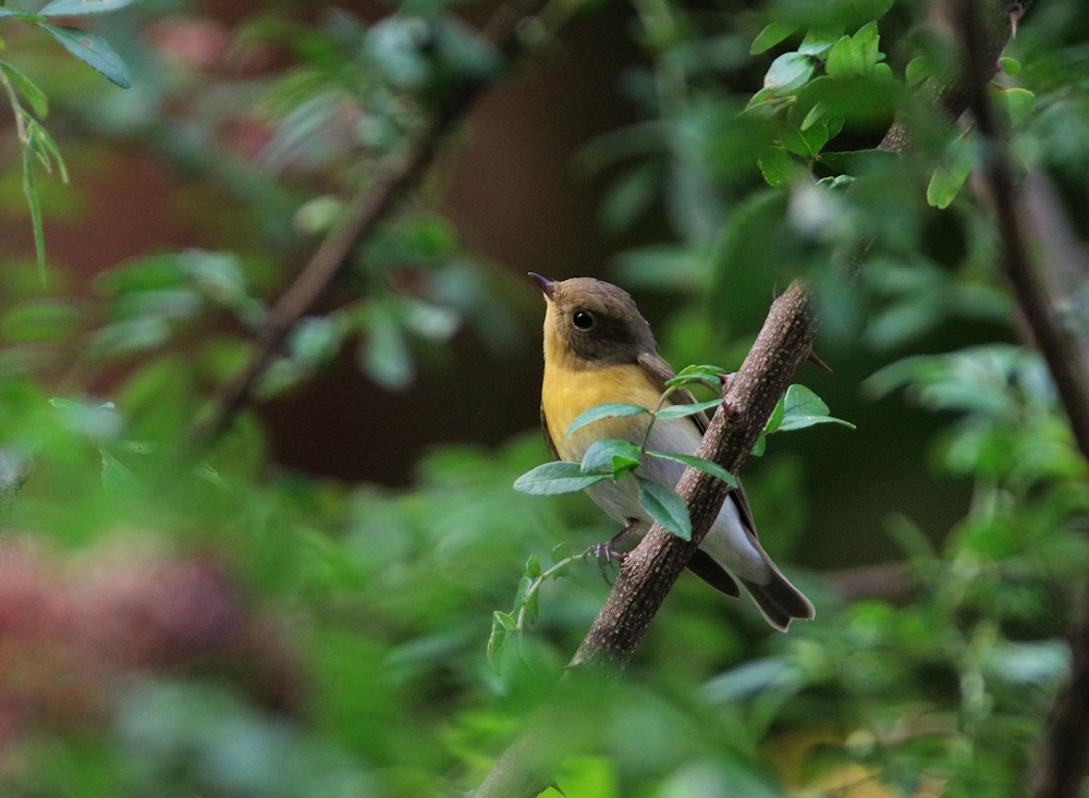 ムギマキとは変わった名前ですが麦をまく秋の時期に見ることが できるのでこの名が付いたとのことです。キビタキとよく似ています。写真の個体はメスで まだ成熟していない若鳥のようでした。特徴は喉から胸にかけての黄色です。 空中で回転して虫を捕食するフライングキャッチを何度も行っていました。