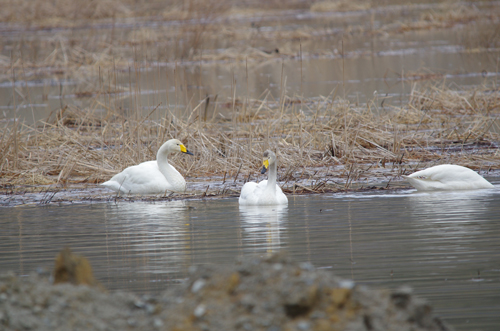 観察時期:冬 動画CLICK ! 観察場所:河川、湖など 鳴き声:コォー コォー オオハクチョウとコハクチョウの違いは、口ばしの周りの 黄色い部分が大きいのがオオハクチョウ、比較して小さいのがコハクチョウとなる。 大船渡市では2012年に盛町の権現堂橋の下にオオハクチョウを見ることができたが、 それ以降は見ることはできていない。陸前高田は毎年、気仙川に100羽以上のオオハクチョウが 飛来してきたが2024年1月時点では数えるほどしかハクチョウは飛来していない。どうしてだろう。