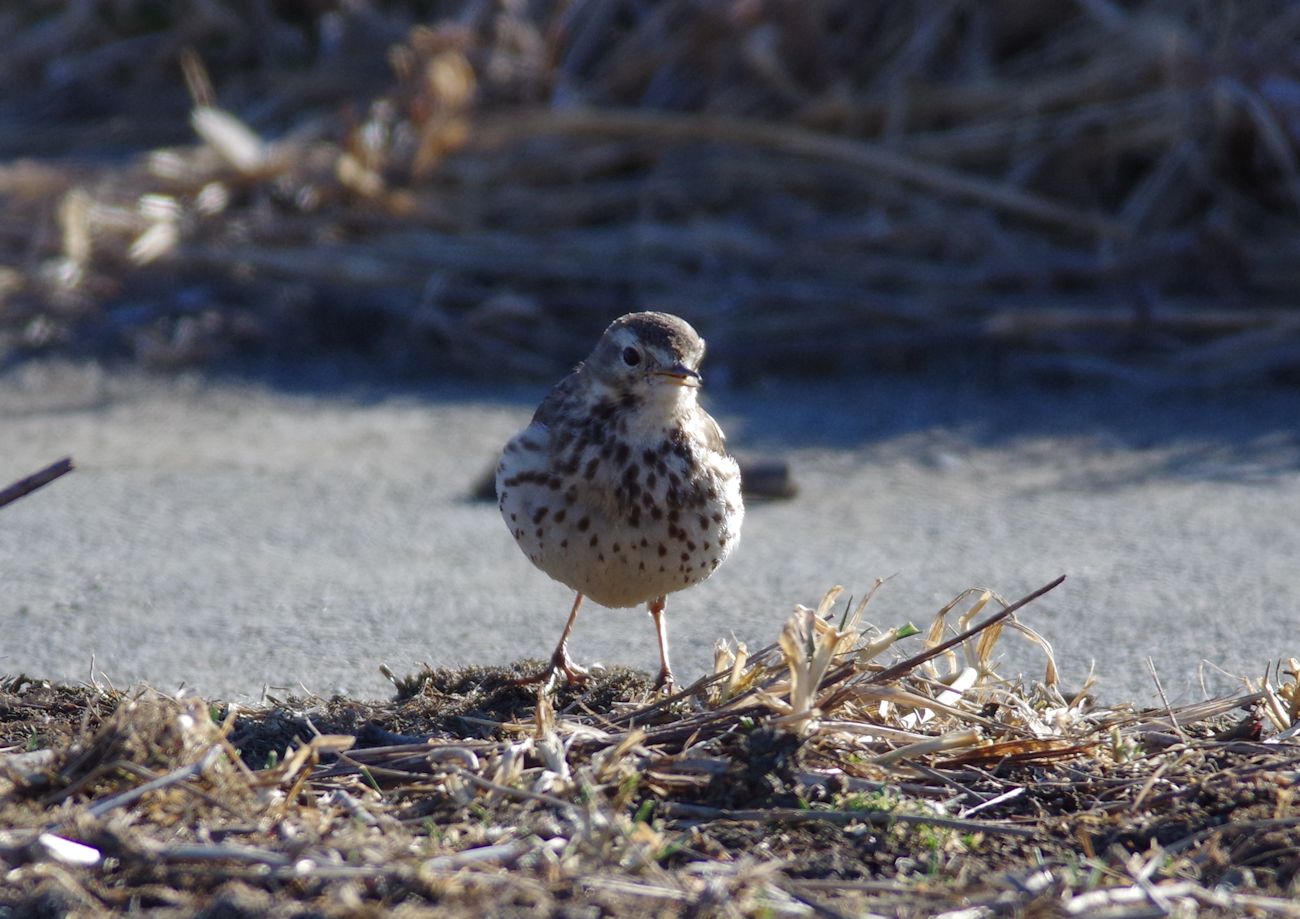 冬に飛来する冬鳥です。全体に茶褐色で胸からお腹にかけて白っぽく、
