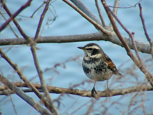 冬鳥としてシベリア方面から飛来する。 昔はツグミと言えば焼き鳥としてよく食べられたそうです。 地面を降りて餌となる虫やミミズなどを探すことが多い。 まだら模様を見せつけるように胸を反って周囲を見回すポーズが印象的です。